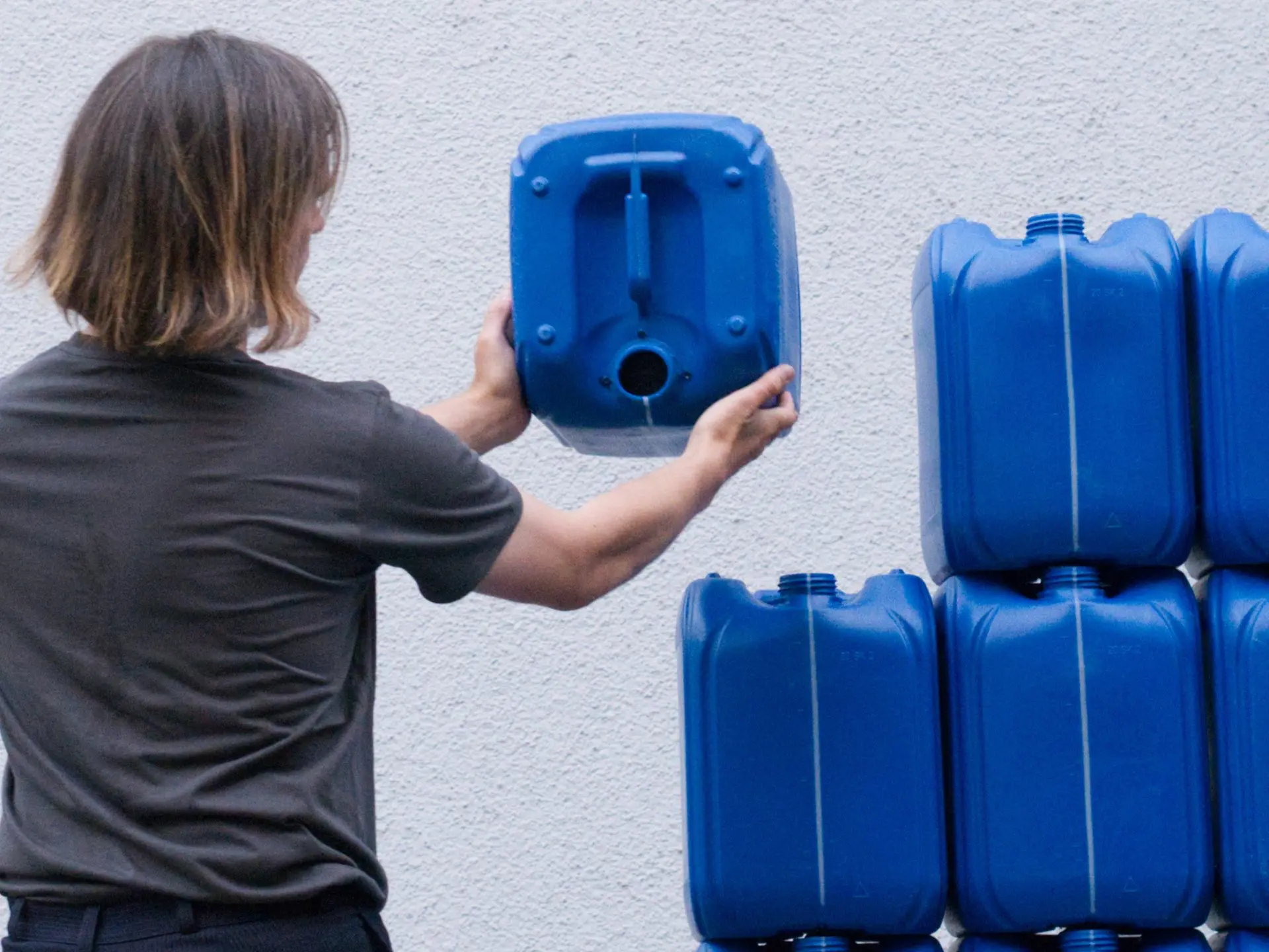 Ein Performer und 35 Plastikkanister suchen Gemeinsamkeiten und zeigen Gemeinschaften. Durch ein „O“ werden Kanister zu Kanisterwesen und zum 7- stimmigen Chor. Die Figuren – die sich immer an der Grenze zwischen Figur und Nutzobjekt bewegen – verteilen sich im Umraum und bilden neue Klangstrukturen. Sind sie noch am Leben, wenn sie verstummen? Wer sind die Kanister, wenn sie wieder Kanister werden? Eine durch ihre Reduziertheit beeindruckende musikalische Open Air-Inszenierung für Groß und Klein.