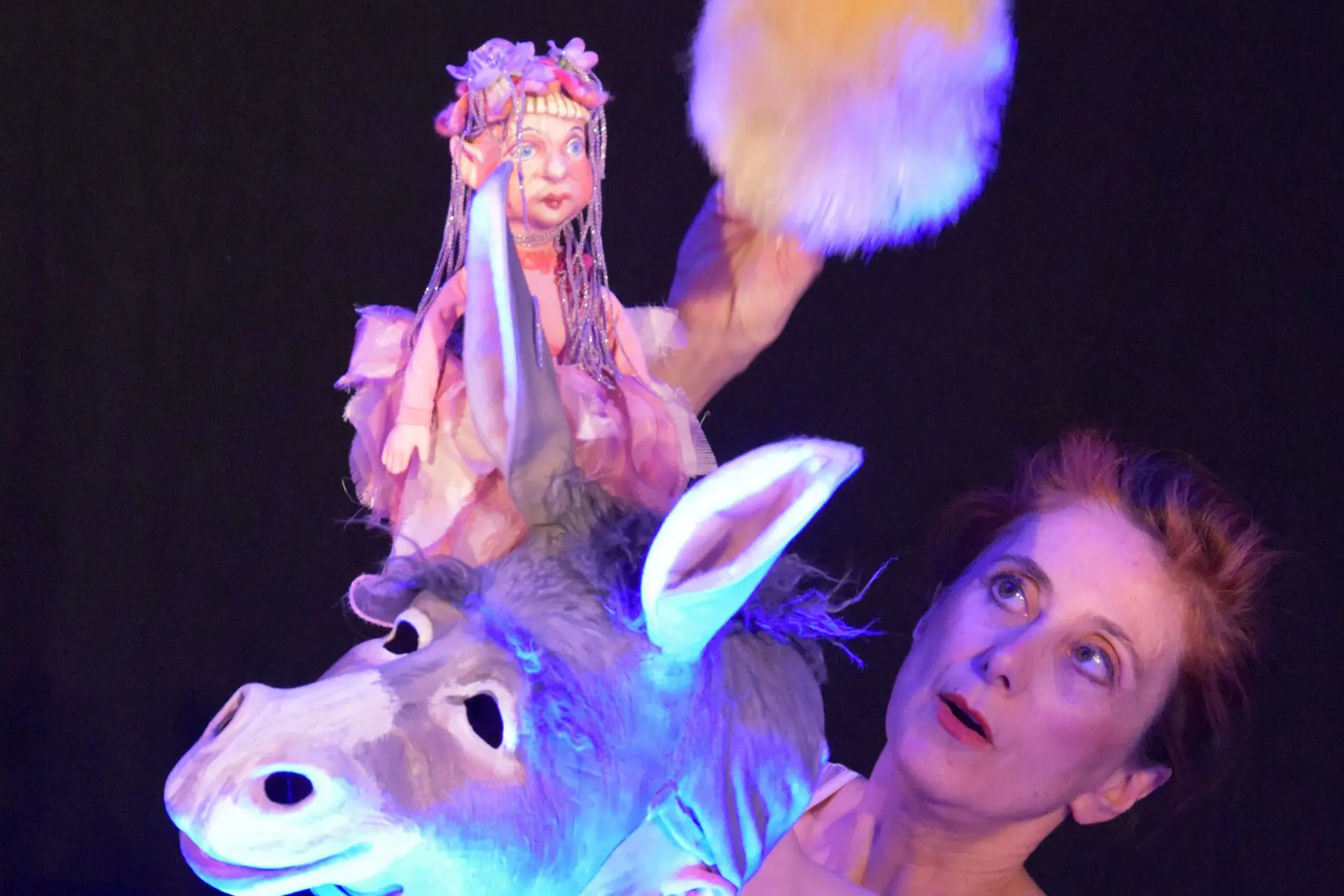 Der Theaterklassiker von Shakespeare, dieses Zaubermärchen, dreht sich um das intime Miteinander von Paaren. Die Beziehung zwischen der Elfenkönigin Titania und dem Elfenkönig Oberon ist zerrüttet. Da trifft es sich gut, dass bei den Menschen eine junge Frau nicht den heiraten will, den sie heiraten soll, sondern den, den sie liebt, der aber eine andere will. Vier Verzweifelte fliehen in den Zauberwald. Auch fünf Handwerker, die zur Hochzeit ein Theaterstück aufführen sollen, sind dort, um zu proben. Oberon und Titania wittern ihre Chance! Mit Spaß und Spuk beleben sie ihre Beziehung neu. Die Liebenden sind Tischfiguren, die Handwerker Handpuppen, Elfen und Trolle Schattenfiguren. Als Bühne ein multifunktionaler Wäscheständer, behangen mit Nachtwäsche, für die Szenen. Neue und alte Sprache, Gesang und Musik. Der Stoff, aus dem die Träume sind…